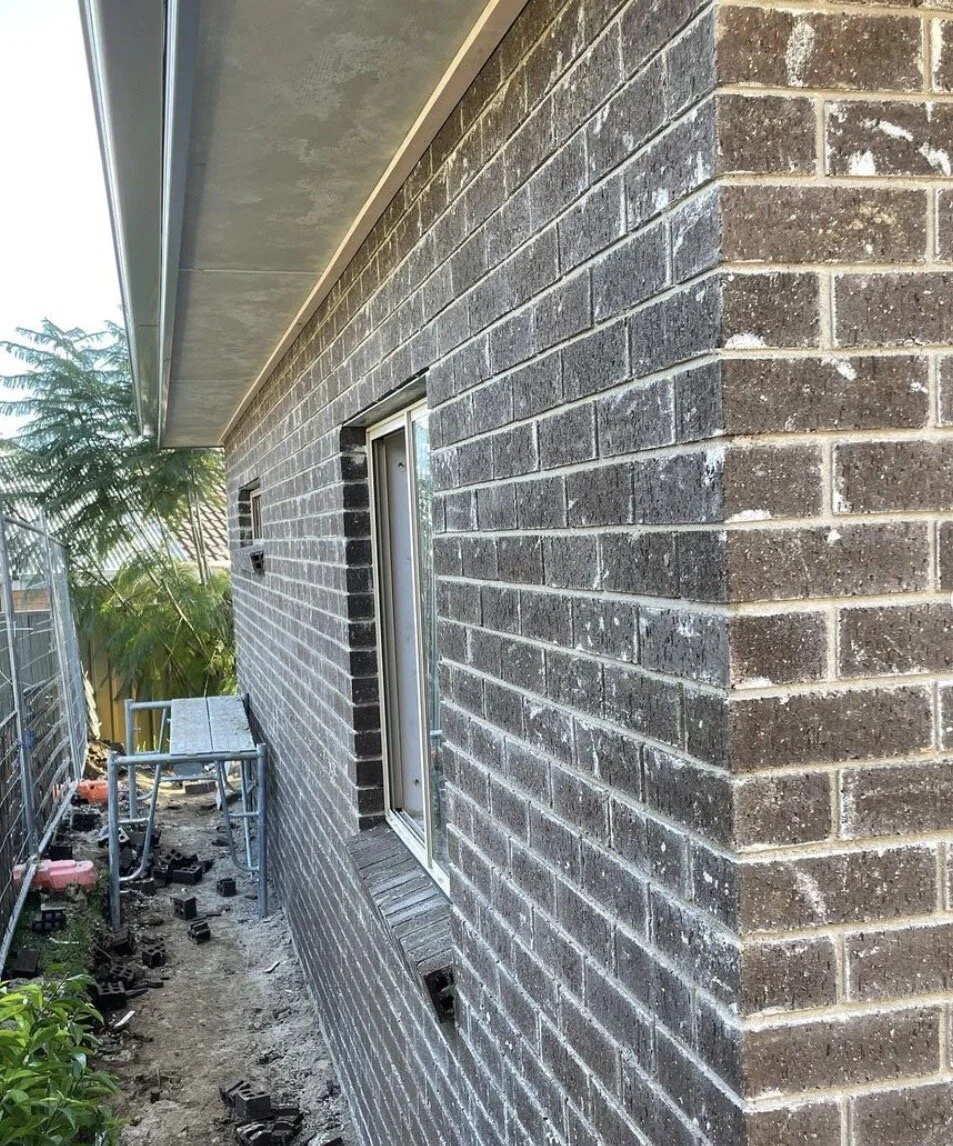 Two bedroom granny flat. Extruded Austral Charcoal Brick with off white cerement in a rake finish.